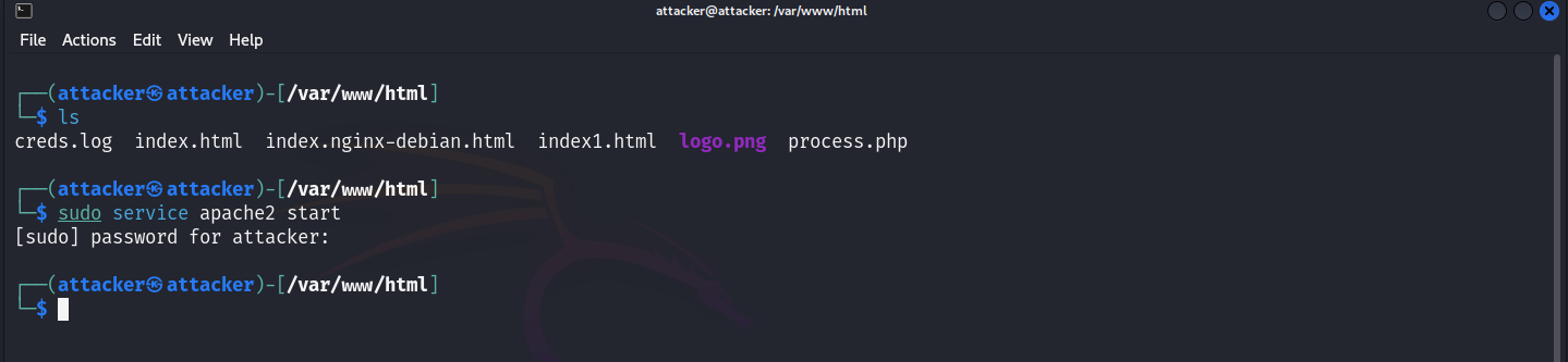 We deploy it by cloning the repo into /var/www/html, creating a creds.log file with write permissions, and starting Apache.