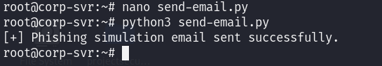We send the email via the SMTP connection from the compromised corporate server. Because we’re sending from an internal server address, the email will appear to originate from a trusted source.