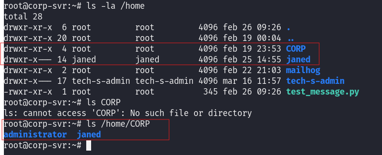 ls -la /home # check user home directories