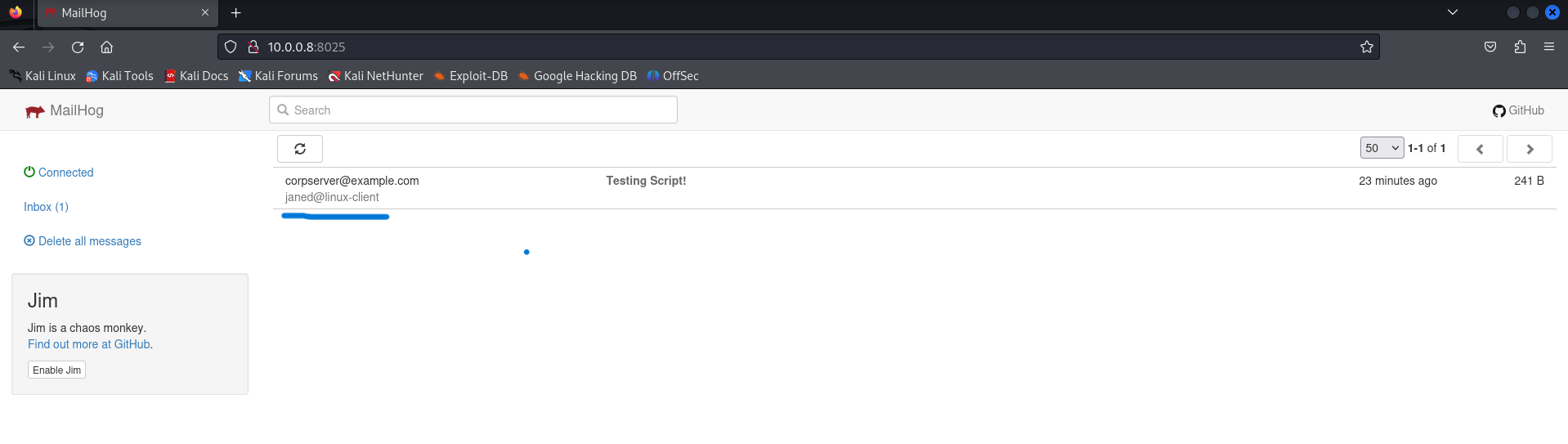 Additional Linux machine discovered beyond MailHog