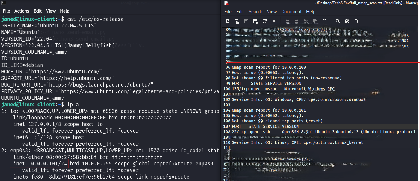 | Actions | Nmap host discovery → Hydra SSH brute-force → SSH initial access → post-access enumeration → MailHog user discovery → custom phishing page (Apache) → phishing email → Python inbox polling → credentials captured → SSH as janed |