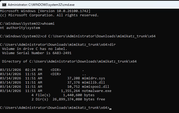 ✅ Mimikatz alert fired — detection confirmed