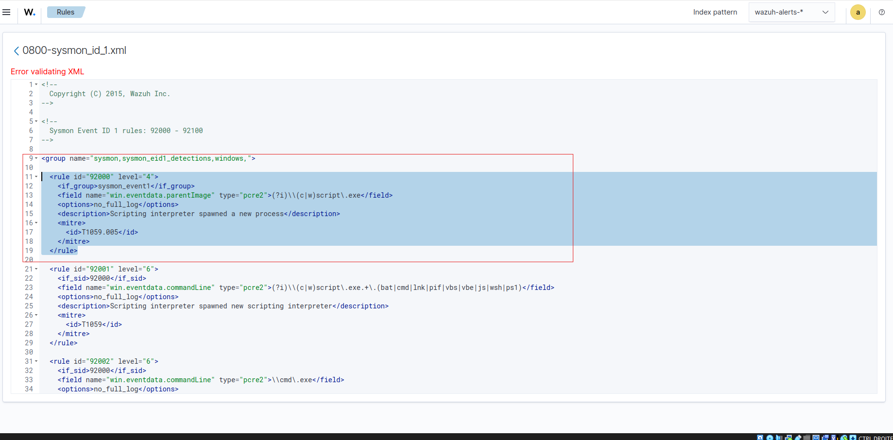 We use an existing built-in Sysmon rule as an XML structure template to make sure our custom rule is formatted correctly before writing it.