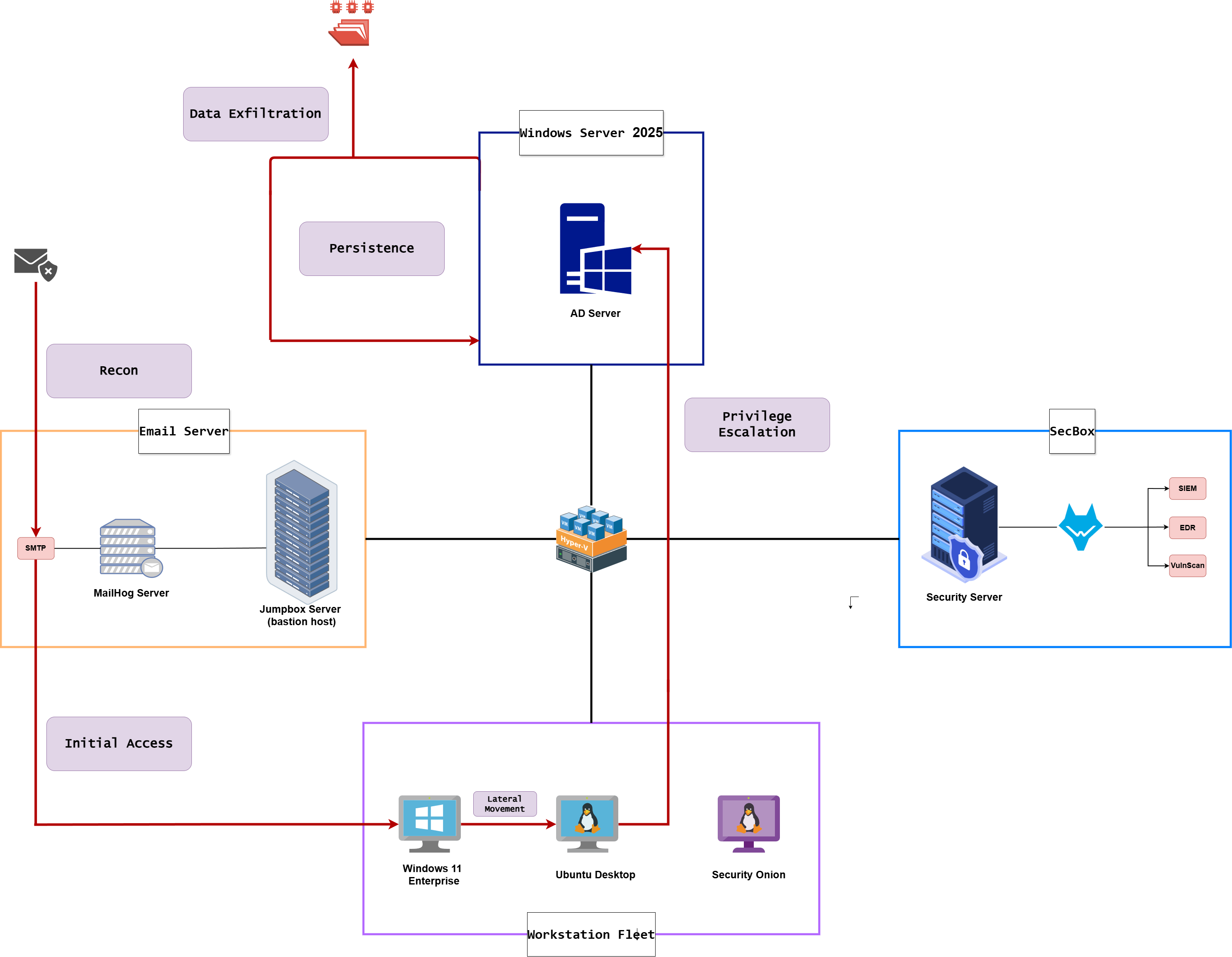 Here’s the full lab architecture at a glance — seven VMs connected on a shared NAT network, all isolated from the real internet.